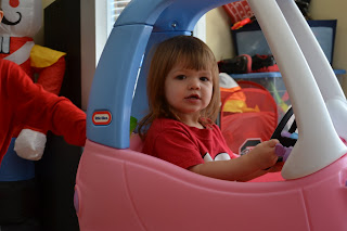 Gram and Pop arrived next with adorable hats from New York and a Cozy Coupe and art desk. We had Daddy very busy putting things together!